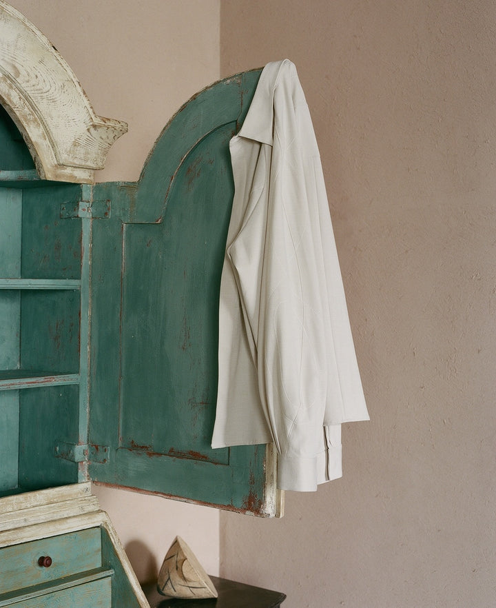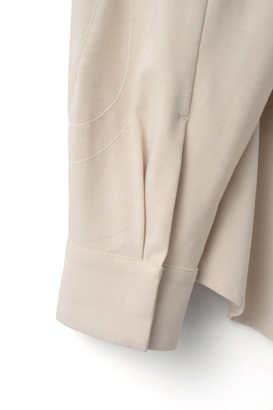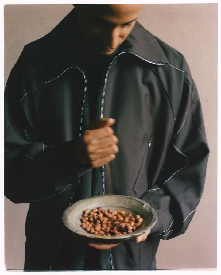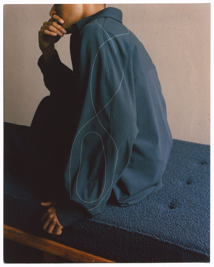 1stコレクションでは、OAOの「SUNLIGHT」シリーズをコンセプトに、彫刻家・イサム・ノグチ氏の照明作品「AKARI」をテーマとしたコレクションを展開いたします。全体に配置された複数のステッチのラインと有機物の形状を思わせる立体的なパターンメイキングにより構築された、3ピースのセットアップアイテムを発売。落ち着きのあるエレガントな佇まいでありながら、軽やかな動きがあり、生活の中での優雅な瞬間を演出します。