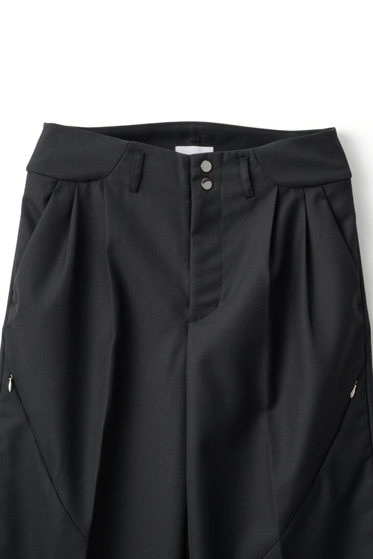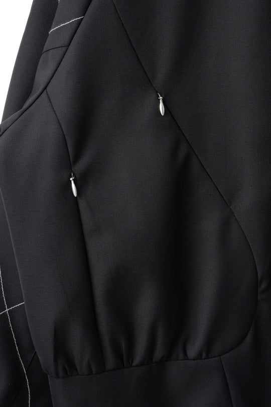曲線的なカッティングの間には、細かなZIPポケットや、スナップボタンなど、機能的なパーツが随所に配置され、タイムレスなデザイン性と現代的なスマートさが美しく共存します。